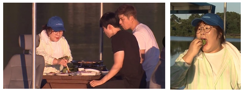 개그맨 송별철, 류근지가 등장 세사람은 낚시를 가서 결국 삼겹살 먹방에 돌입하고 떡밥을 문 물고기로 인해