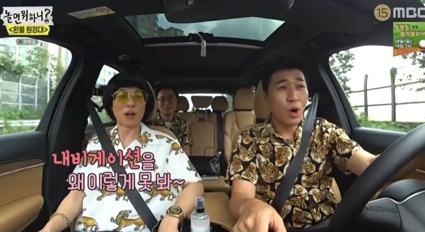 그러나 네비게이션도 잘 못 보고 운전이 서툴어서 유재석