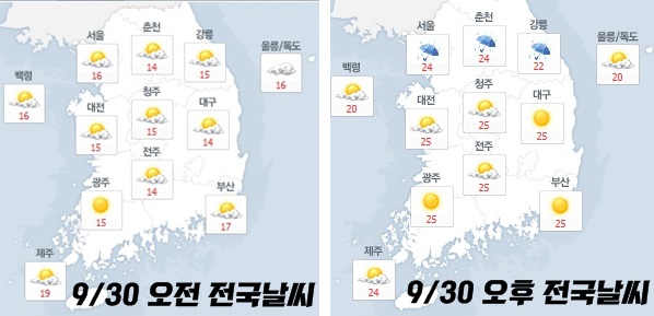 추석연휴내내 한기와 함께 비소식이 있네요.. 외출할때라도