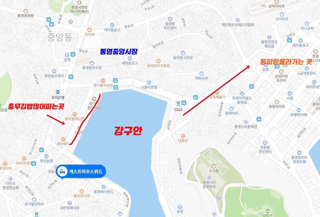 통영의 중심가, 통영시장근처 숙박, 동피랑근처 숙박 등등