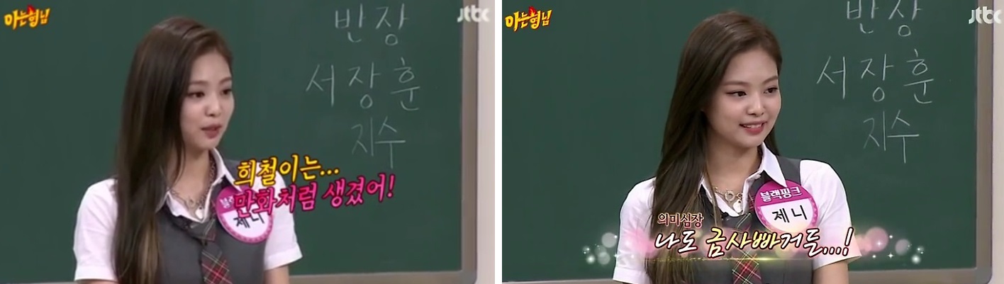 2017년 아는형님에 출연한 제니는 톡톡 튀는 영어로 김영철과 프리토킹을