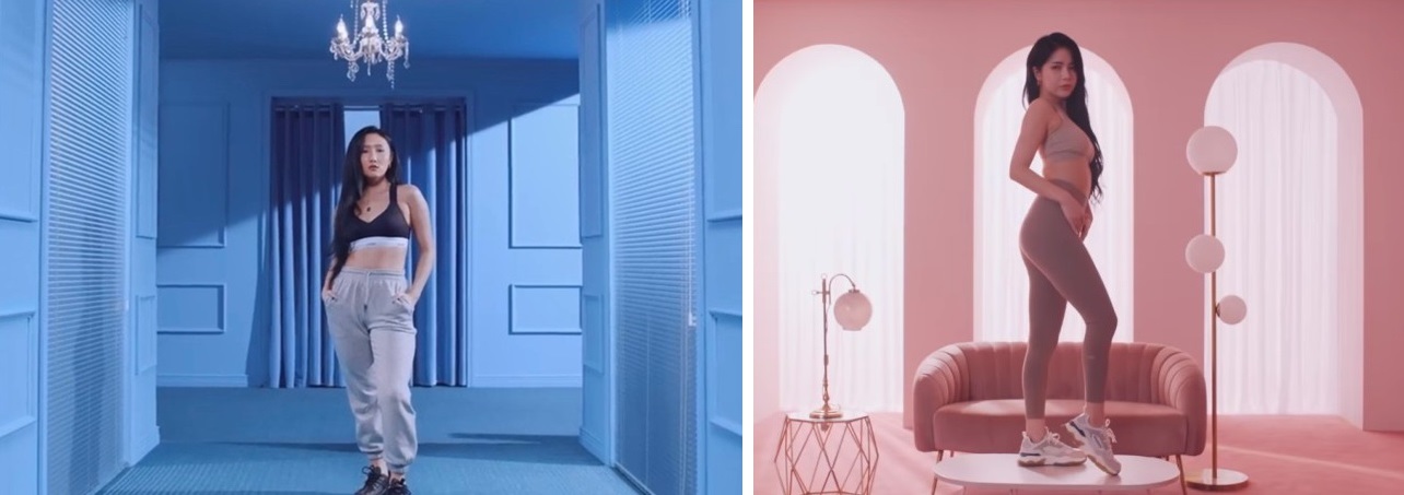 WANNA BE MYSELF 뮤직비디오를 보면 멤버들이 레깅스 입고 있고 화사도