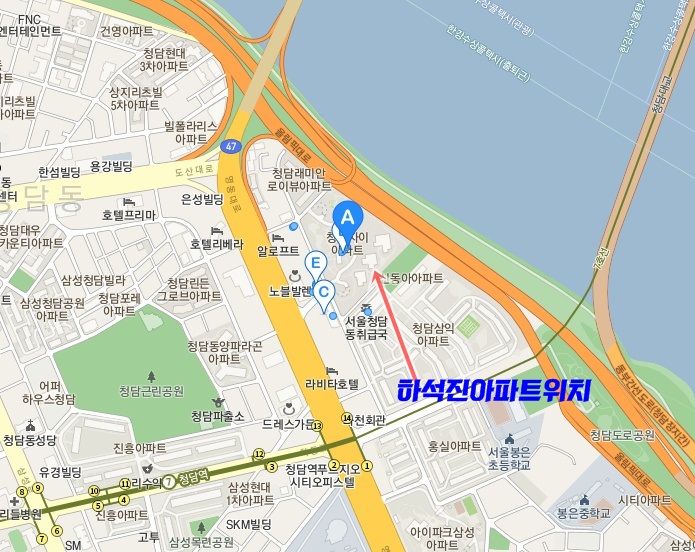 검색해보니, 하석진 아파트는 강남 청담동 자이 이며, 올림픽대로 바로