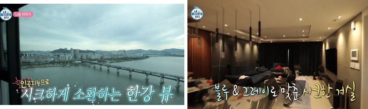 한강뷰의 럭셔리 아파트를 공개했지요. 거실에서 한강이 바로 보이고, 거실로