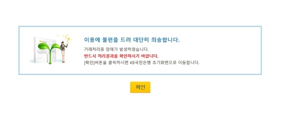 ('KB 스타 뱅킹')으로 송금하려니 오류가 떠서 안되는군요.