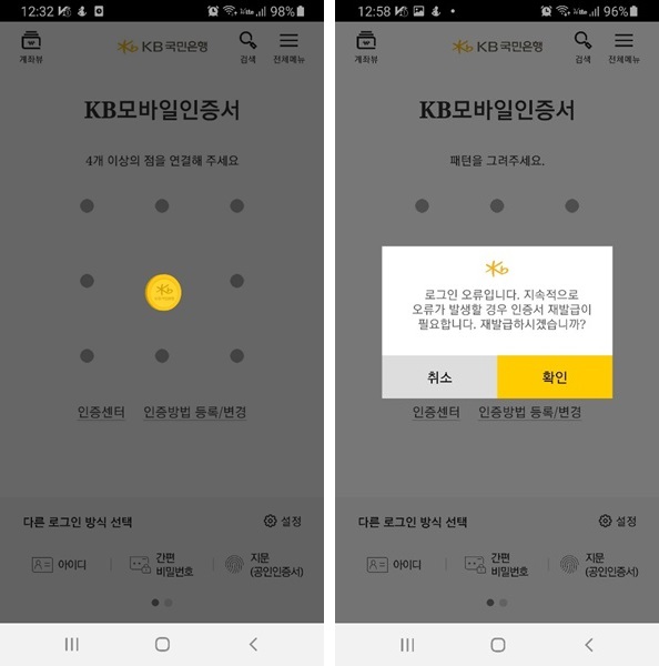 'KB 스타 뱅킹' 앱을 열면 KB모바일 인증서에서부터