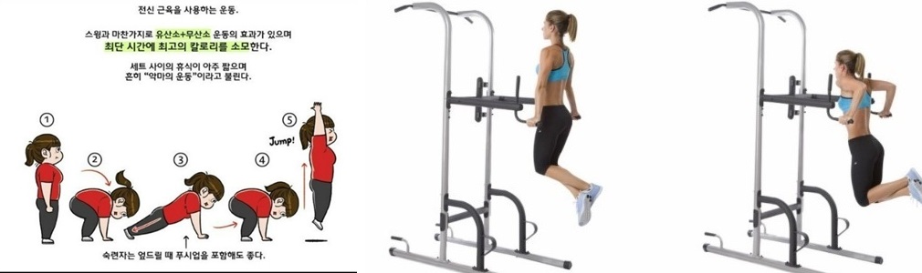 버피운동의 자세한 자세와 사진에 빠진 딥스운동은 아래의 사진 참고하세요.