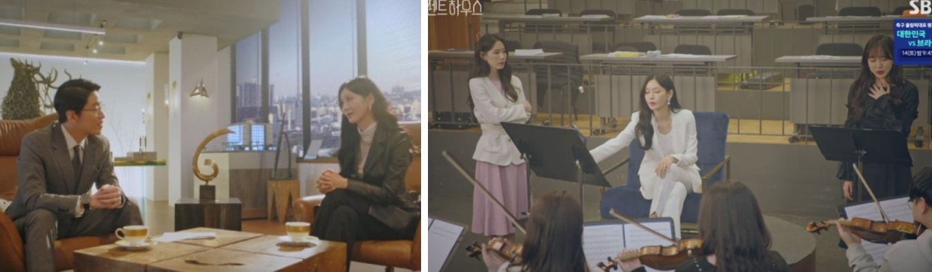 "은별이가 독창 무대 서지 않으면 청아 재단을 천서진 동생 천서영[신서현]에게 넘기겠다고 하죠.