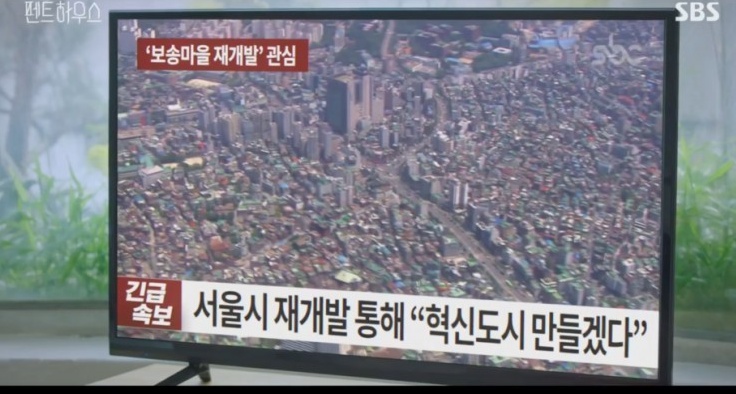 부동산의 아들이 쇼파에 누워있다가 TV를 켰는데 마침 그때, 보송마을 재게발 뉴스가