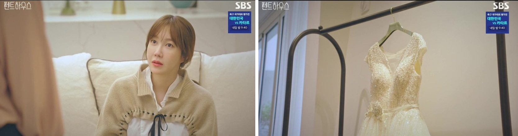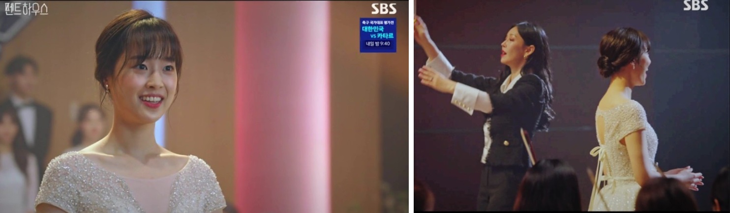 천서진이 특별하게 자기가 입었던 드레스를 리폼해서 마련해 놓았다고 하며 심수련은 하은별을