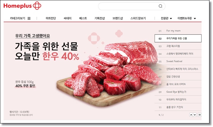 지친 수험생들을 위한 저녁 만찬으로 '농협한우 등심.안심.채끝'을 마이홈플러스 회원을