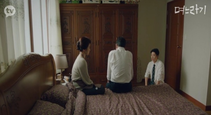 방에 들어가서 쉬어라고 하고 며느리 보고는 편안한 옷 입고 슬슬 준비하자고 합니다..