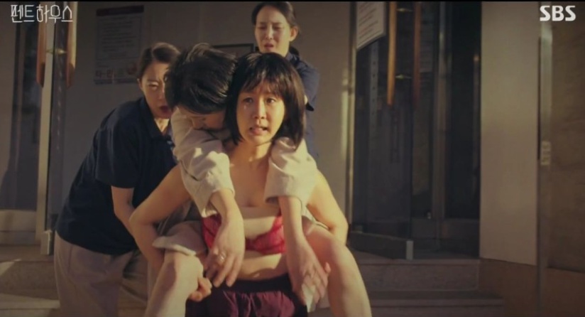 오윤희 품에 안긴 하윤철 모습으로 펜트하우스 10회의 마지막 장면이지요..