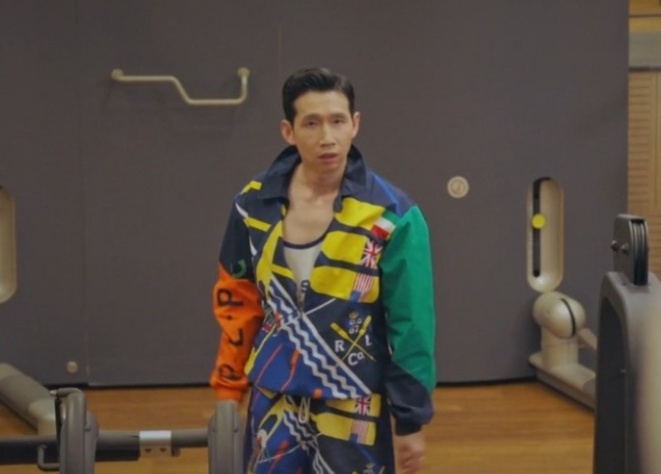 헬스장에서 입었던 이규진(봉태규) 운동복, 트레이닝복이 화려한 칼라와 디자인이 눈에 띄네요.