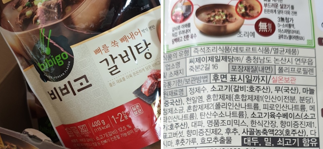 저희가 주로 먹는 비비고 갈비탕과 비교해보면, 소고기 갈비 원산지는