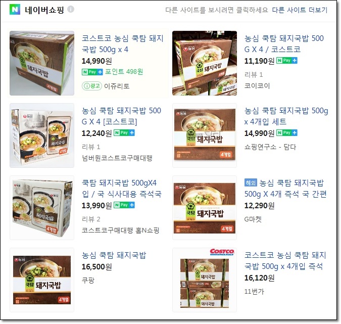 코스트코에서 판매 가격이 훨씬 저렴하네요. 네이버에 검색한 농심 쿡탐 돼지국밥
