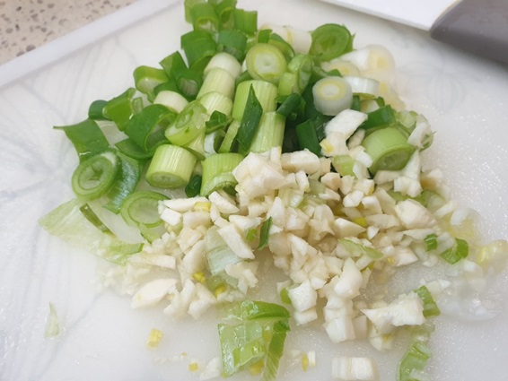 마늘과 파를 다져둔다. 사골국물이 그냥 먹으면 느끼한 맛이 날 수 있어서