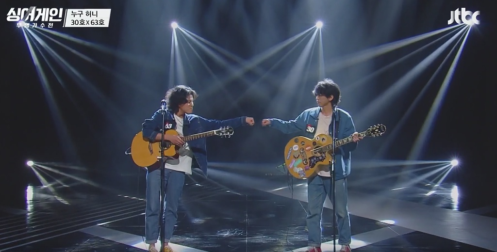 노래를 부르기 전에 30호와 63호는 현란한 기타 연주를 하지요.