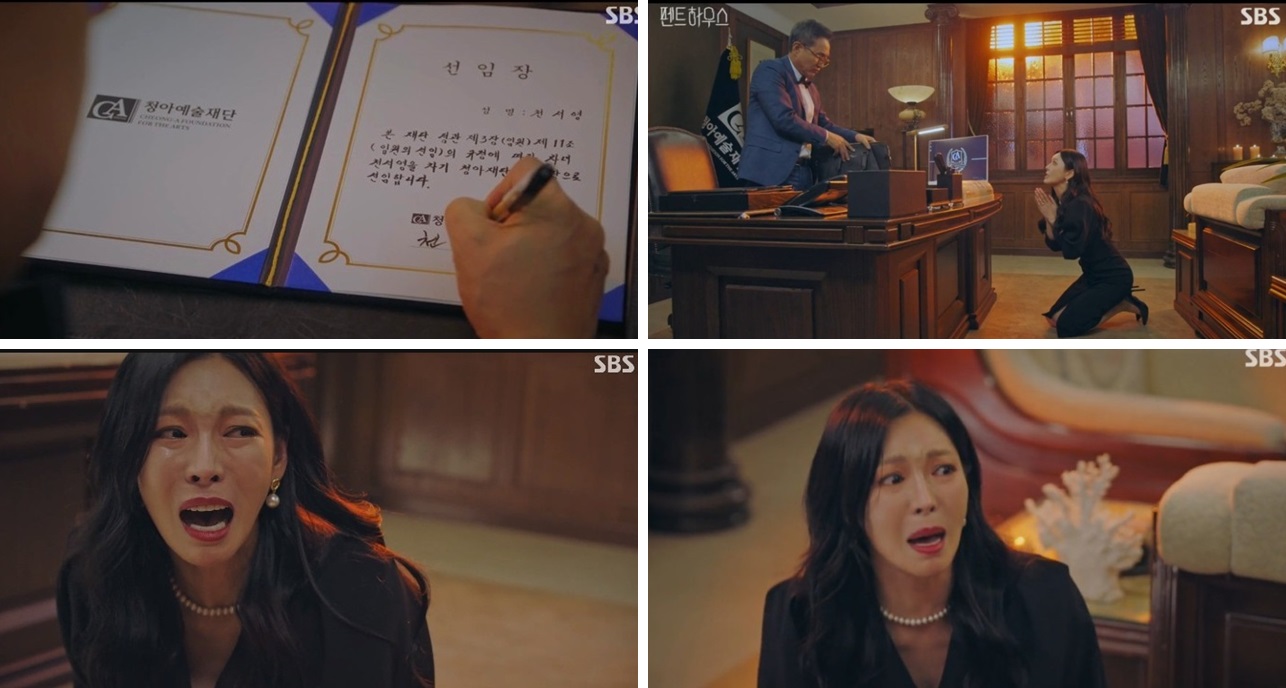 청아재단을 맡기겠다고 합니다. 이 소식을 들은 천서진은 정말 너무 행복한 눈물을 흘리죠.