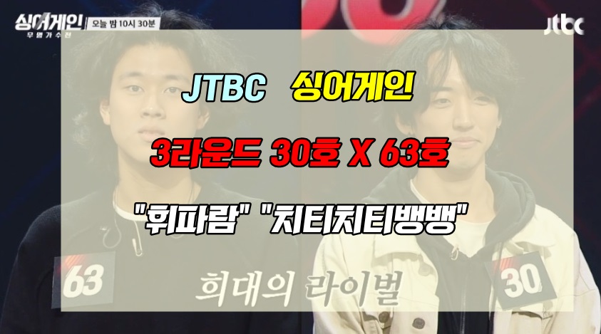 이상으로, JTBC 오디션 프로그램 '싱어게인' 3라운드 63호 대 30호의