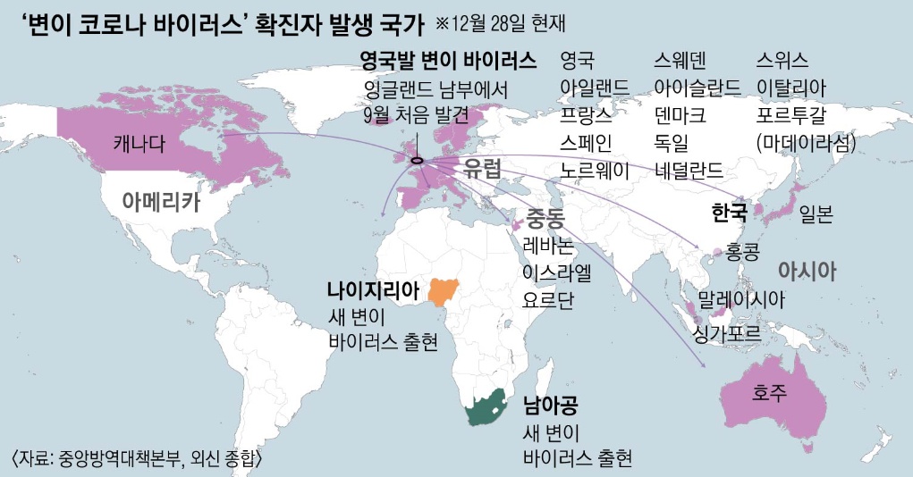 영국 변이 바이러스는 현재 유럽 각국을 넘어서 아시아, 중동, 호주, 북미