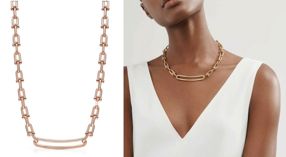 제품명은 티파니 하드웨어 링크 네크리스 (18K 골드, 길이 17'' )입니다.
