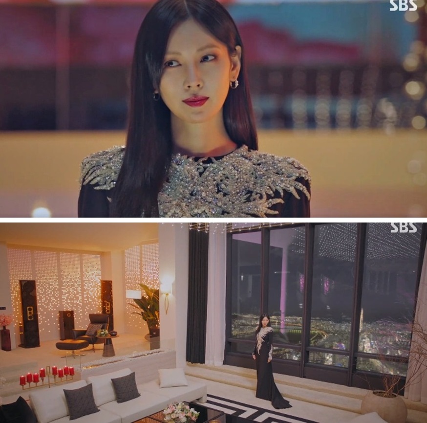 파티 할때 입었던 드레스와 마지막회 21회에서 드라마 끝부분에 이지아가 살았던 펜트하우스에