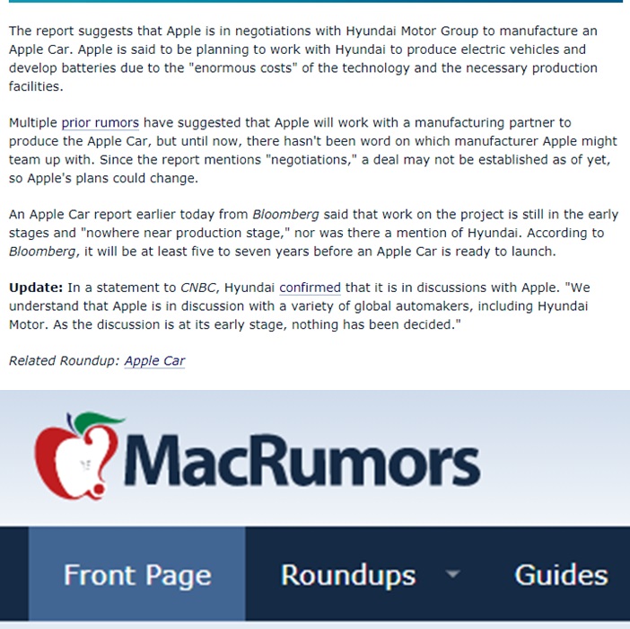 MacRumors 뉴스 사이트에 현대차와 애플카 협상 뉴스가 메인 뉴스로 나와있군요.