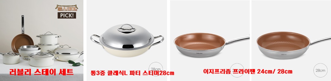 현재 Lovely stay set와 통3중 클래식L 파티웤 스티머 28cm 와 이지프리즘 프라이팬이