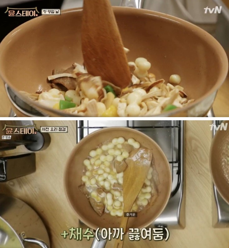 1.8일 방영했던 윤스테이 1회에서 손님을 맞이 하기전에 윤스테이 직원들 먼저 사전 요리 점검을