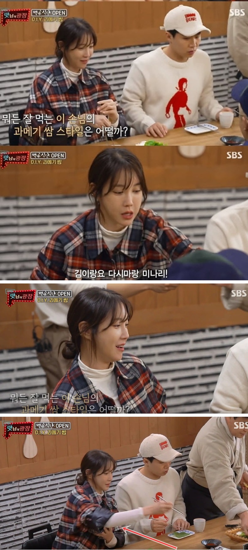SBS '맛남의 광장' 58회 과메기편 이지아 뽀글이 후리스 자켓/체크셔츠
