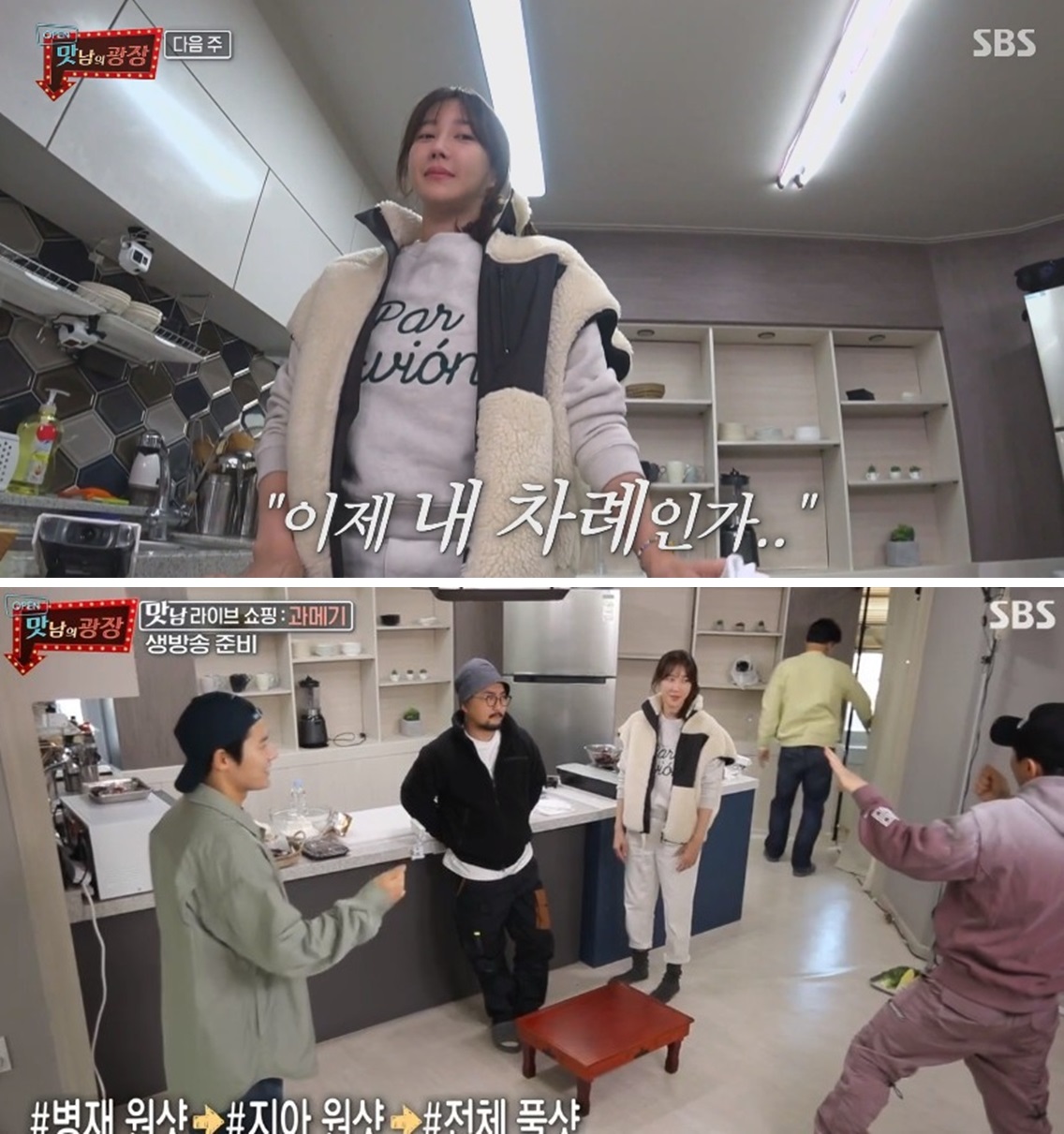 양세형, 김희철, 이지아는 '맛남 쇼핑 라이브'의 특별 무대를 공개하죠. 김희철은 밥상 아래에서