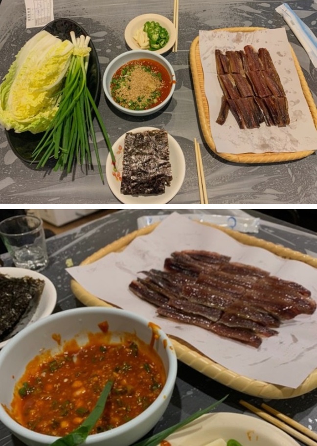 많이 볼 수 없었죠. 두 사람은 과메기를 맛 보면서 김을 빼고 먹을 때가