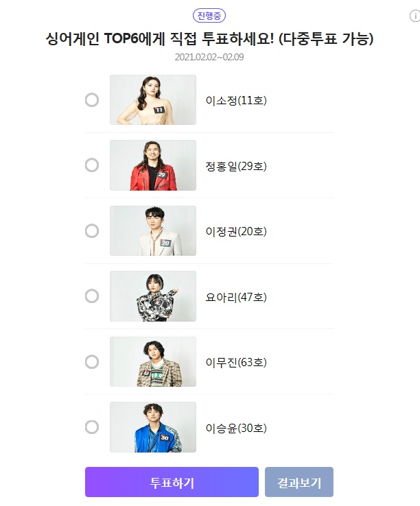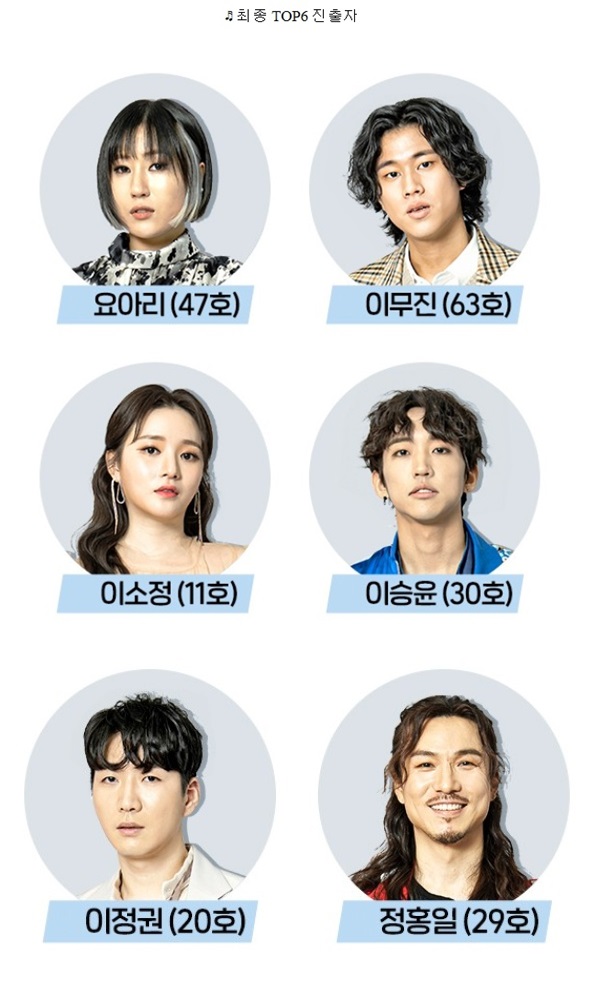 3. 아래의 화면이 나옵니다. 싱어게인 파이널 TOP 6 진출자 얼굴이 나옵니다.