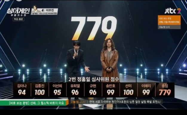 가장 높은 점수를 받았지요. 싱어게인 우승자인 이승윤보다 1점 높은 779점을 받았지요.