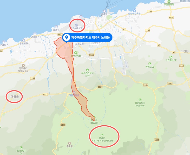 제주도 노형동은 제주의 강남이라 불리우는 넓은 주거지역을 갖춘 곳이라