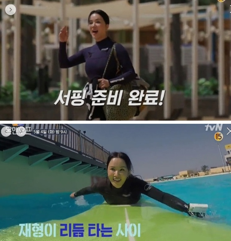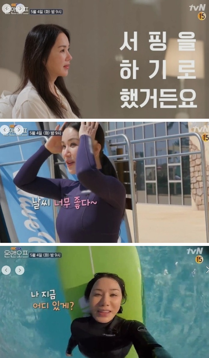 엄정화는 오프 일상으로 서핑하는 모습이 공개되었습니다.