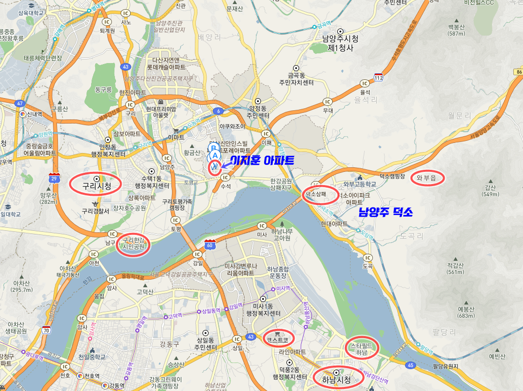 않을까 추측해 봅니다. 이지훈이 살고 있는 다산 금강 펜테리움 아파트는 구리시청, 구리한강시민공원과