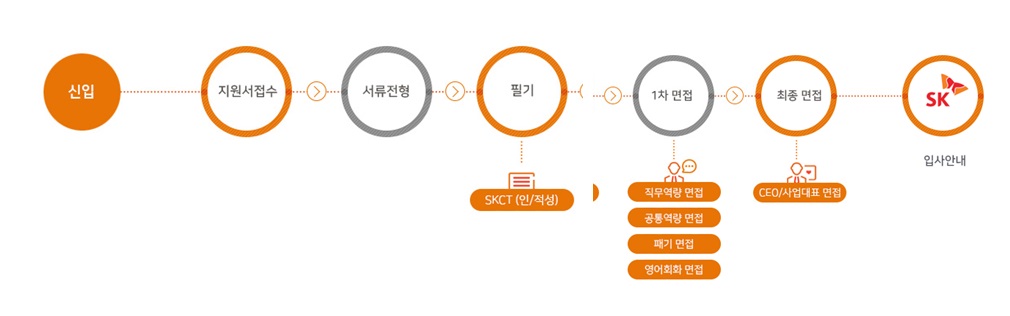 SK 채용 절차를 확인해보면 서류전형, 필기전형,
