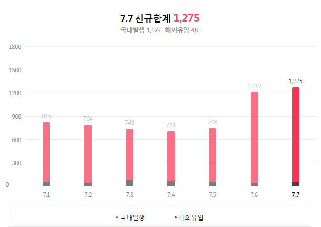 엊그제 7월 6일 1,212명 확진자가 나왔네요.