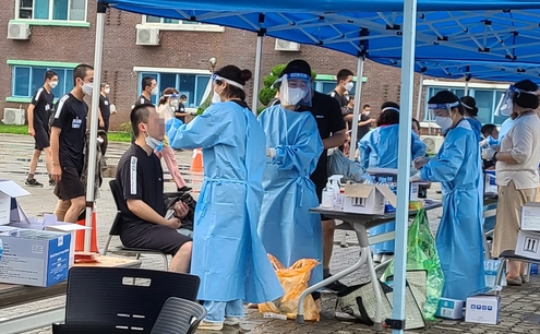 확진자가 발생한 이후 단일 부대 기준으로 가장 큰 규모입니다. 외식업협회와 협조해 훈련소가 있는 지역내 다중이용 시설, 일반음식점, 이.미용시설 등 337개소를 대상으로 신속자가검사키트를 배부하는 등 추가 확산이 이뤄지지 않도록 전력을 기울이고 있습니다.