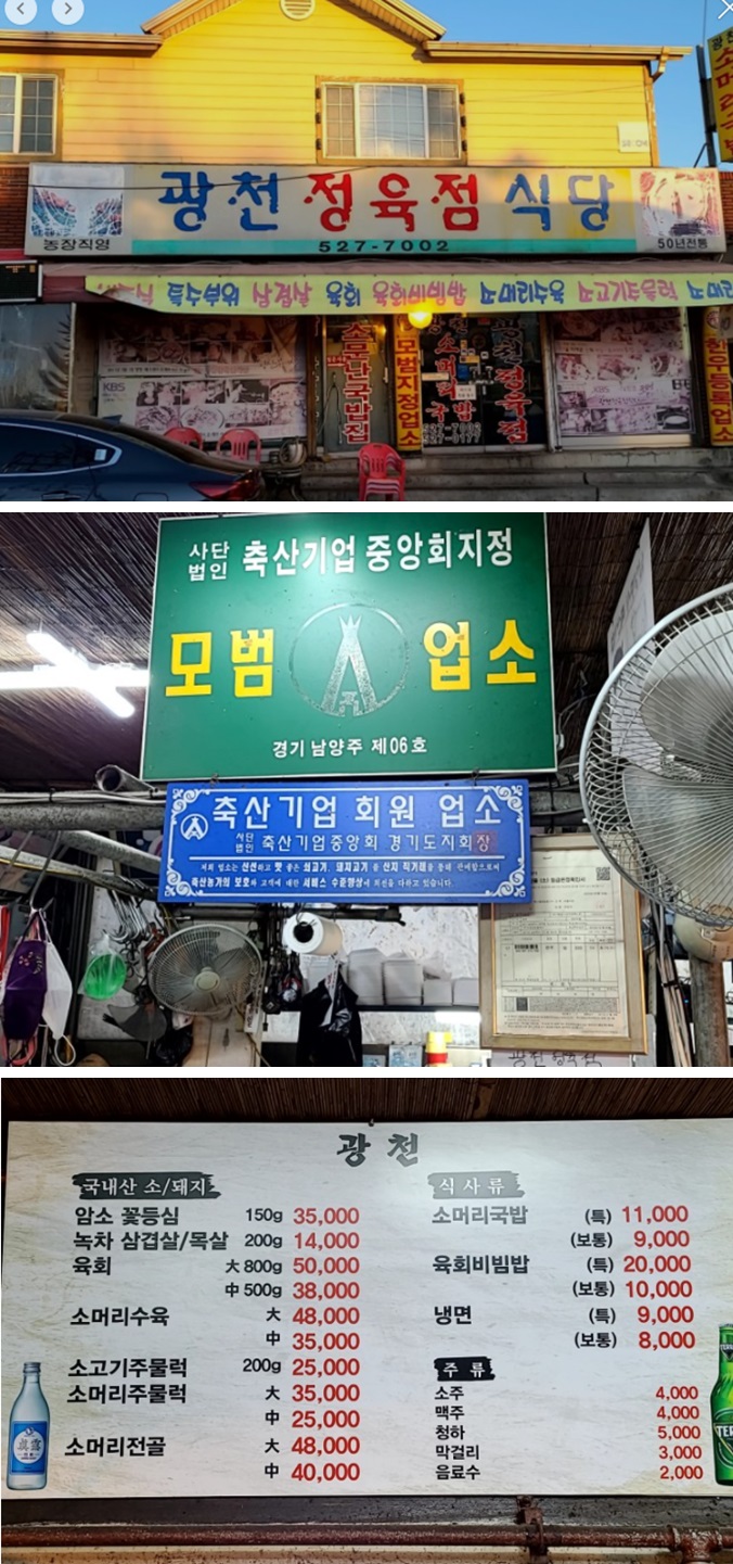 적당한 가격으로 여겨지는데요. 그 맛이 너무 궁금한데요. 저도 남양주 갈 일 있음 광천 정육점 식당을 꼭 방문