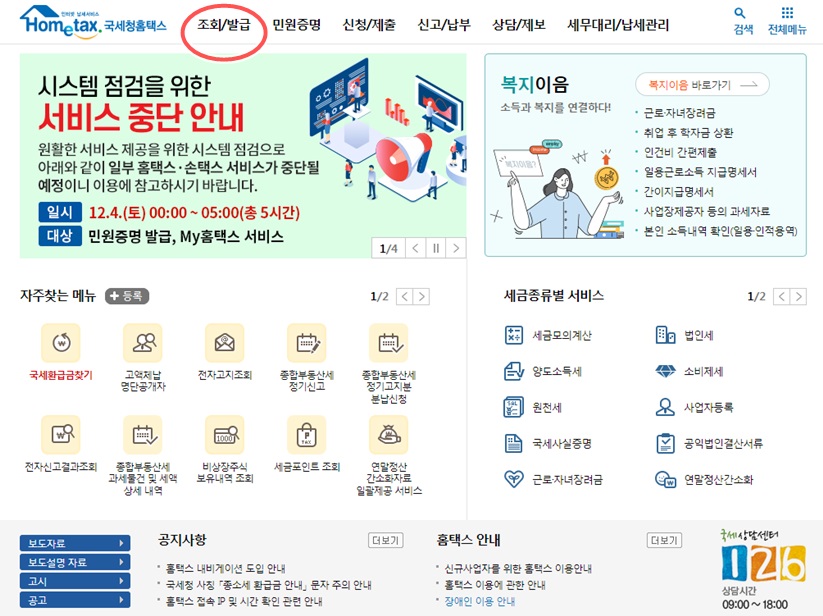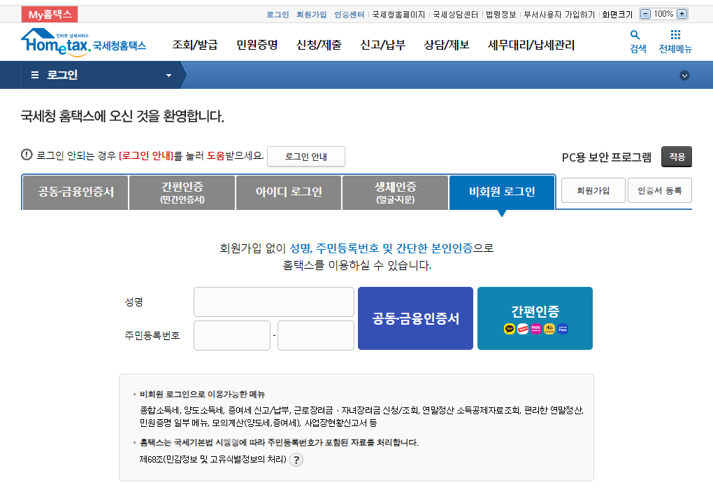 국세청 홈택스(http://www.hometax.go.kr)에서