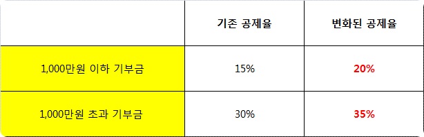 기부금 공제율도 올해 바뀌었죠. 올해는 한시적으로