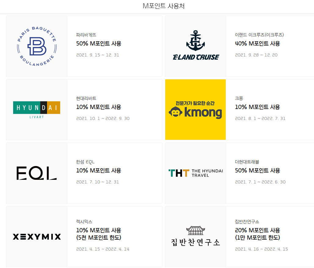 현대카드 m포인트 사용처