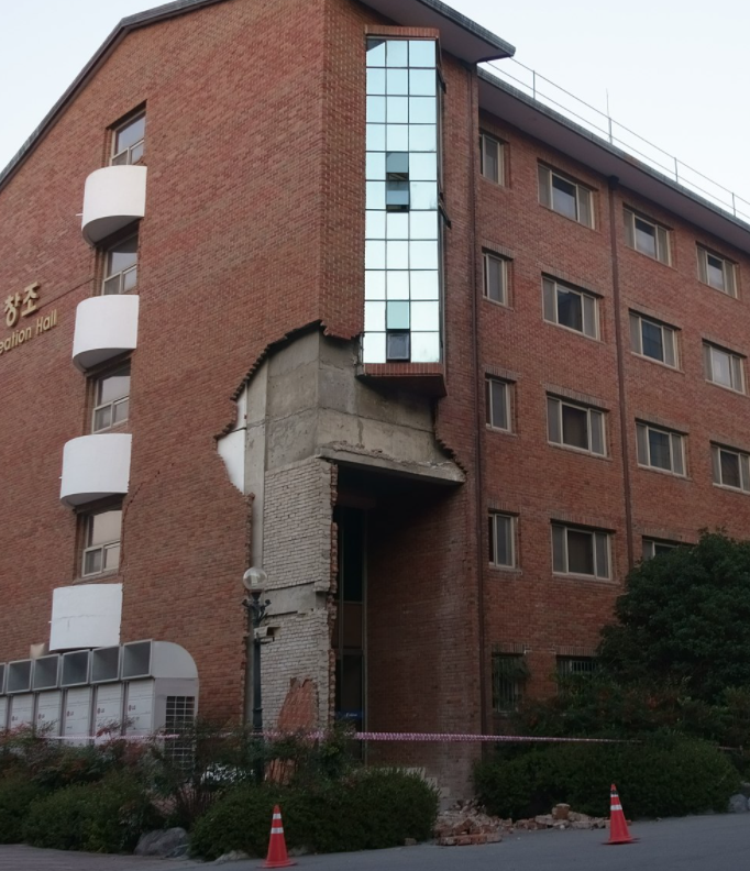 지진이 일어났었고, 그 당시 피해 상황은 한동대학교 건물 외벽이