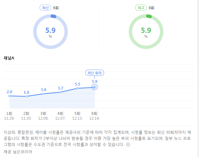 2%로 아주 저저했지만, 6회만에 시청률이 거의 3배나