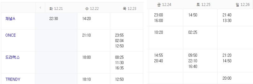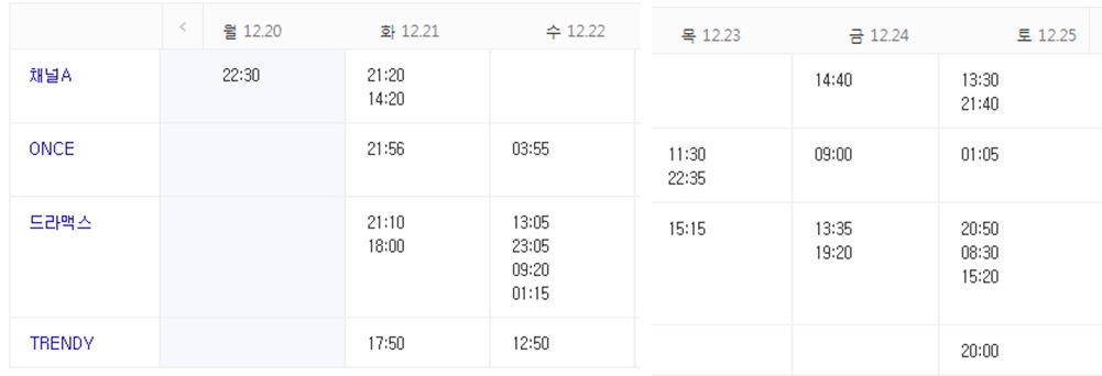 12.25일까지 재방송 시간 편성표를 확인하시고