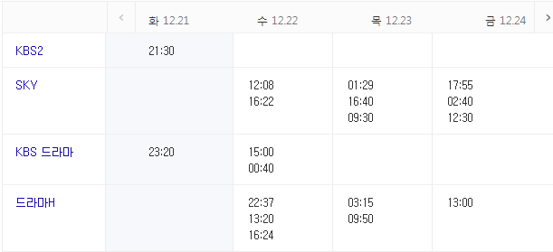 방송기간 : 2021.12.20 ~ 2022.2.15(화요일)