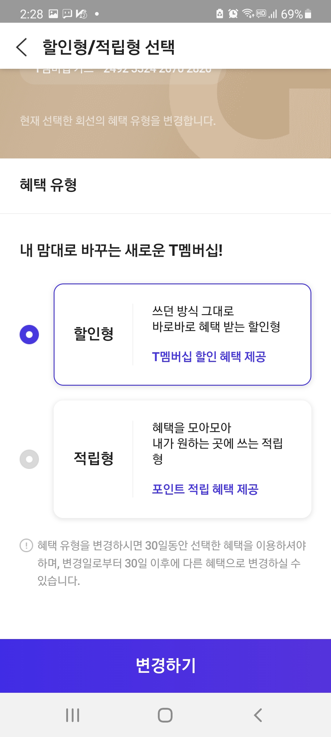 변화는 기존의 할인 혜택에서 할인과 적립 중 한가지를